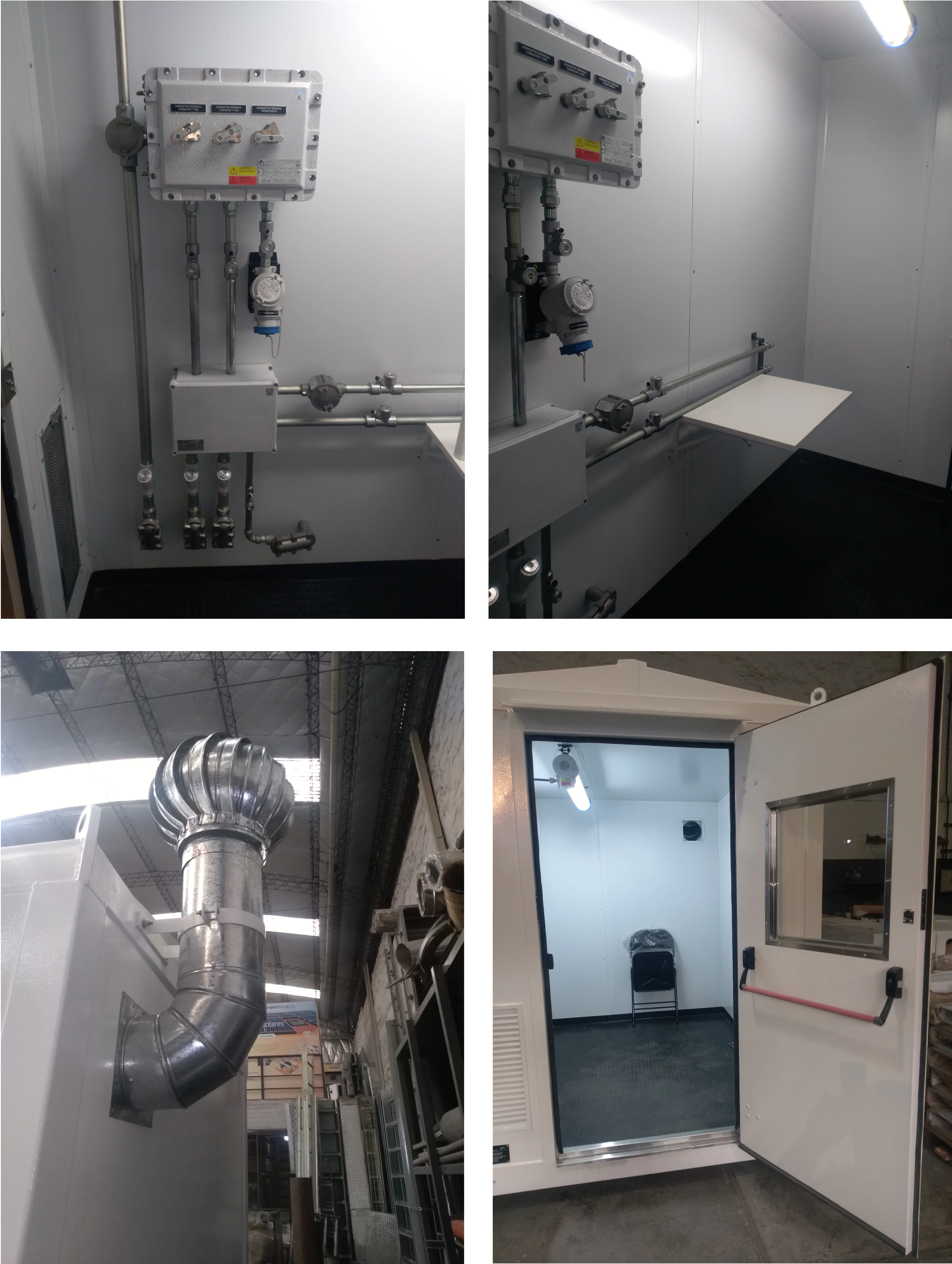 Para garantizar el suministro de gases al cromatógrafo, se integró una estructura segura para almacenamiento y sujeción de cilindros, con materiales y dispositivos diseñados a medida: