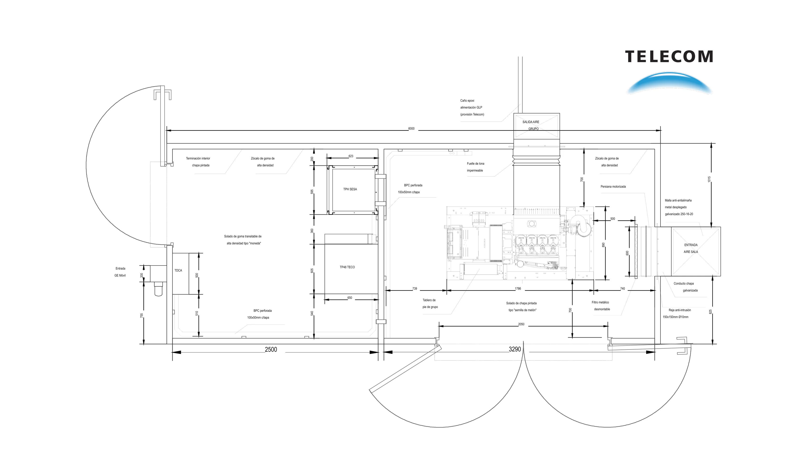 El equipamiento incluyó la instalación de un Grupo Electrógeno, junto con su correspondiente caja de pase para GE móvil, permitiendo acometida externa ante contingencias. Para asegurar la eficiencia térmica y acústica del sistema, se incorporaron elementos especializados: