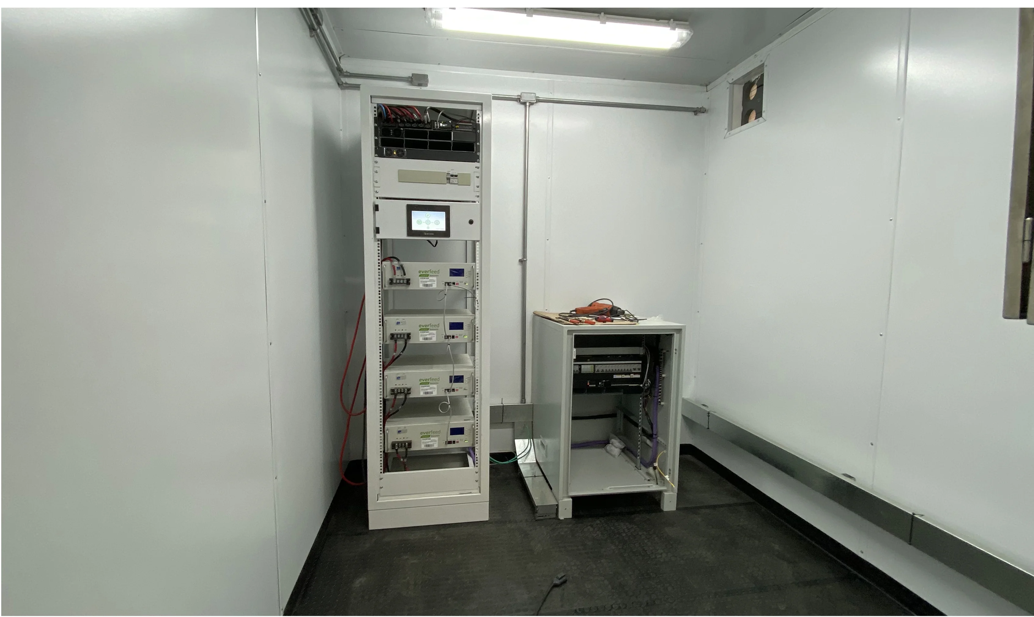 • TPH SESA, compuesto por rack abierto, seis rectificadores de 3 kW, inversor de 2 kW, pantalla táctil de gestión, y cuatro baterías de litio de 48V / 150 Ah.