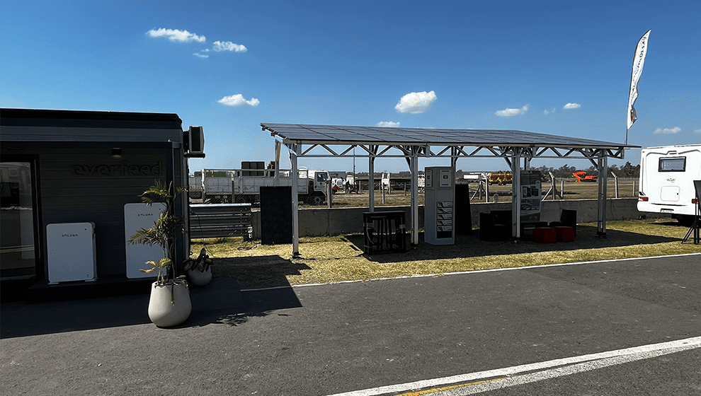 Un año más participamos de ExpoAgro, esta vez en su versión 2023 donde presentamos el stand sustentable que exhibe la capacidad y autonomía de los paneles solares a través del sistema híbrido Hy5 para abastecer una vivienda, demostrándolo con ejemplos concretos como un aire acondicionado, una heladera frigobar y un televisor en pleno funcionamiento, todos alimentados por energía solar. Adicionalmente, se muestran otros productos de Everfeed, Soluna y ABB, distribuidos por Sistemas Energéticos S.A., representantes exclusivos en Argentina, para destacar la amplia gama de soluciones solares ofrecidas por la empresa.