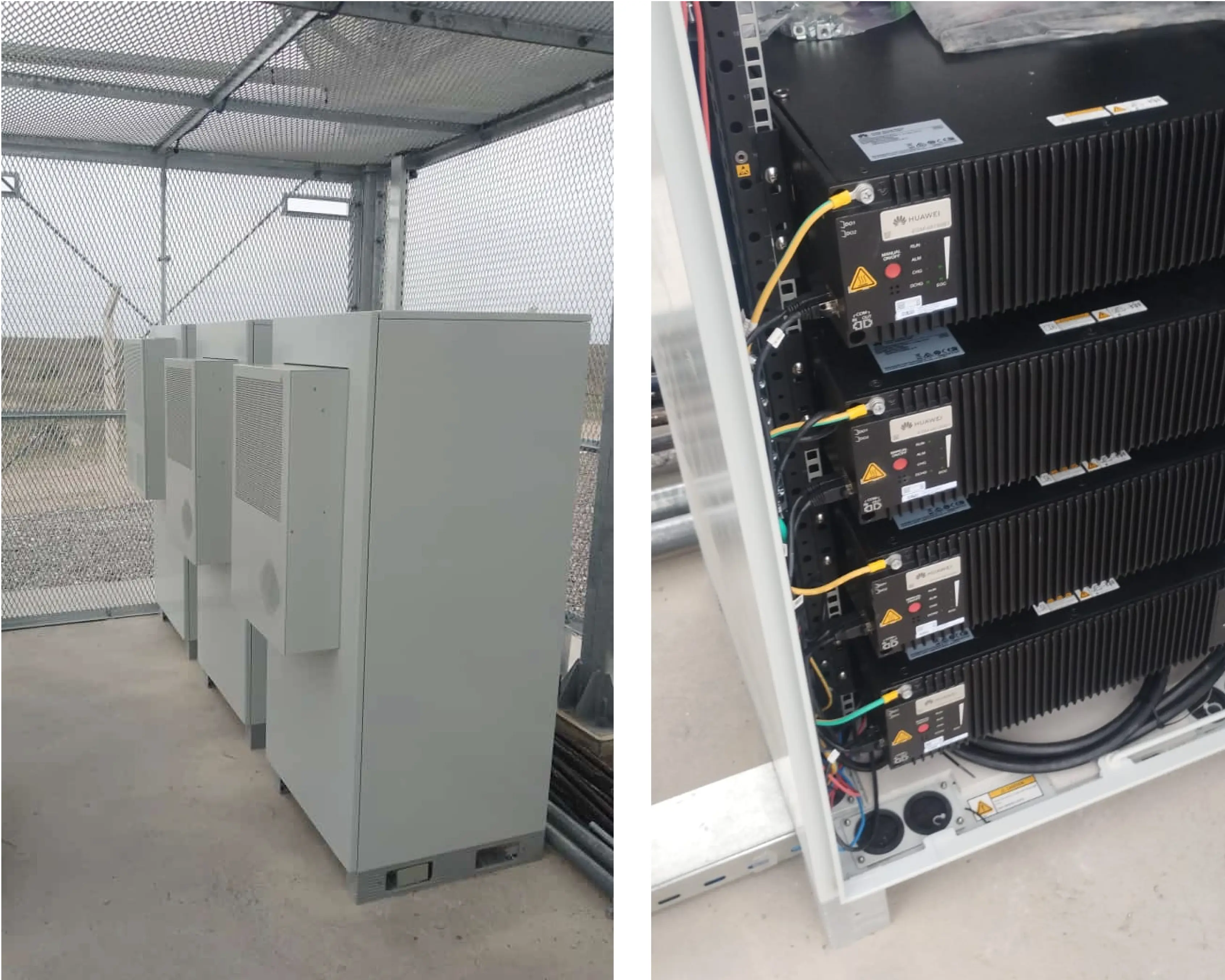 • Dos gabinetes Outdoor para baterías, equipados con nueve módulos de 150 Ah cada uno (catorce módulos para el sitio de Reina Victoria).