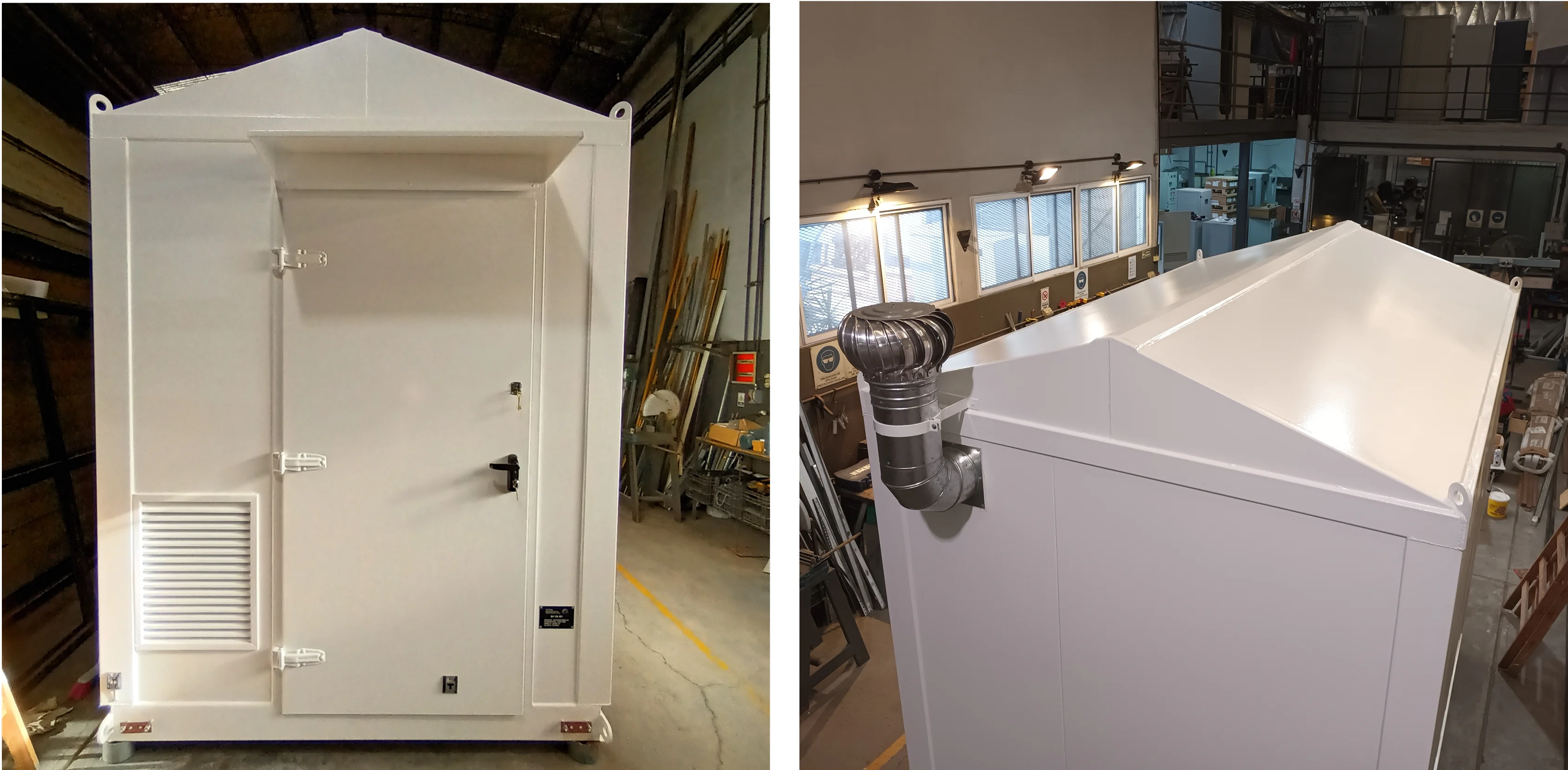 • Cáncamos de izaje superiores e inferiores y esquineros metálicos, que facilitaron la logística de transporte y montaje.