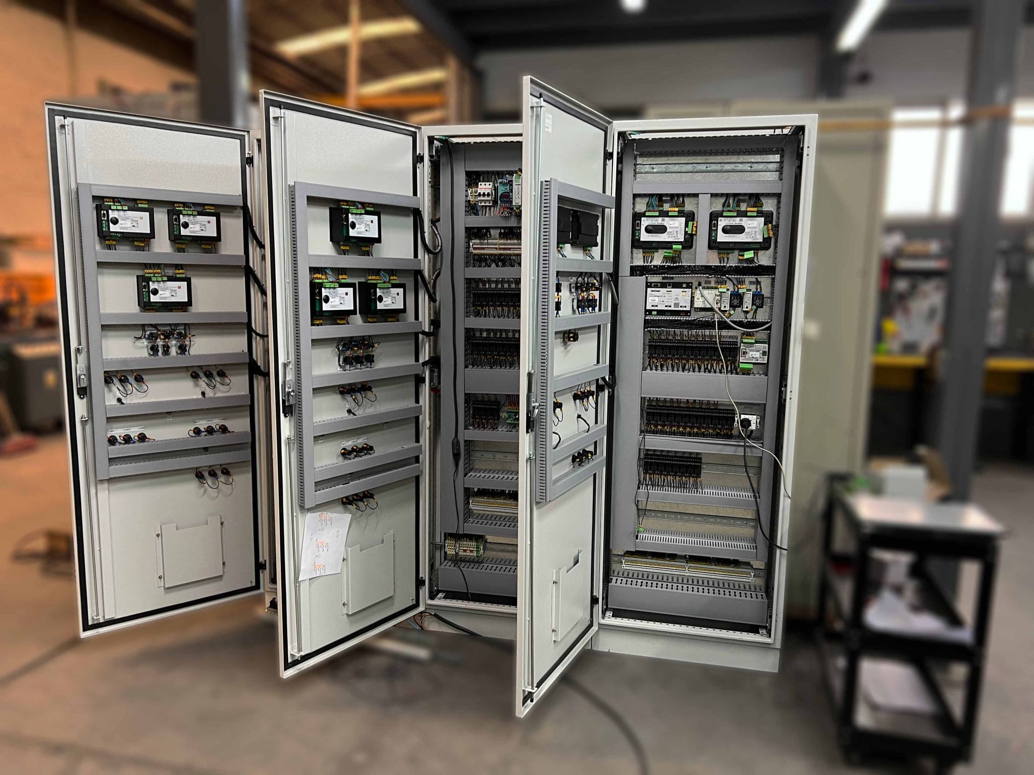 Próxima a su puesta en servicio ya han comenzado los trabajos que Telefónica nos encomendó para la remodelación completa del sistema de arranque y transferencia del principal de sus edificios. Estamos por realizar los vuelcos al nuevo tablero construido con tecnología de última generación que está en nuestra planta en la etapa de control de fabricación y pruebas funcionales .